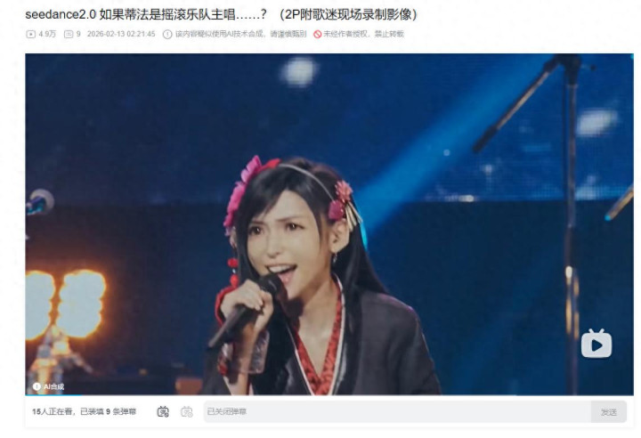 {jz:field.toptypename/}事情是这样的有网友用 seedance 2.0 作念了一个视频,标题是“如若蒂法·洛克哈特是摇滚乐队主唱……”
