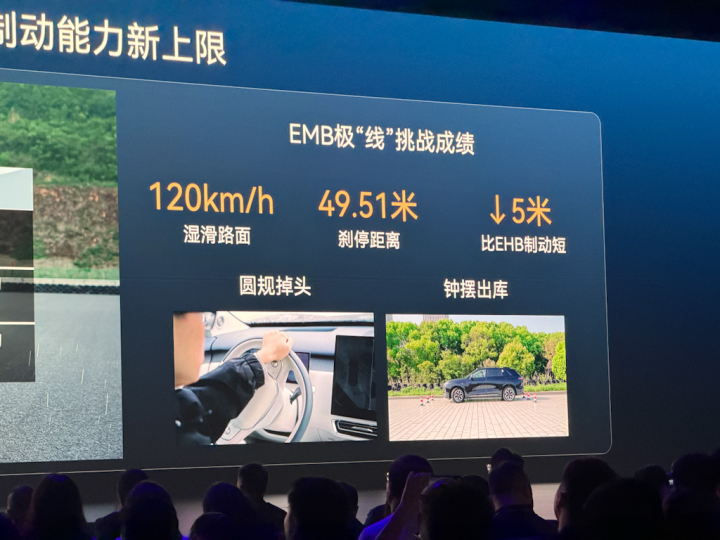 从发布会信息来看,EX7最中枢的卖点之一,是首搭航空级EMB线铁心动系统。简便来说,它取消了传统机械联结,通过电信号平直完成制动铁心,反适时刻达到90毫秒。