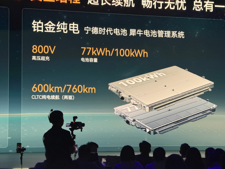 纯电版则走高压平台途径,标配800V架构和宁德时间电板,最长续航达到760km,快充速率也铁心在11.5分钟(5%-80%)。这套组合更恰当一线城市用户,使用体验更偏“纯电化”。