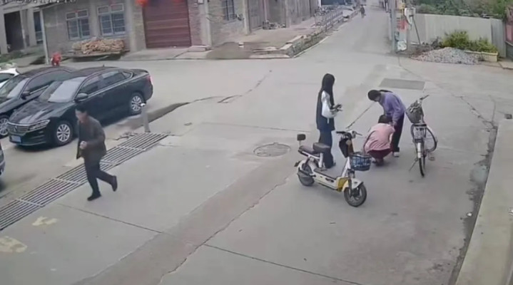 一位老东谈主骑自行车经过路口时,在遁藏车辆流程中跌倒。两名骑电动车途经的初中生看到后,停驻车将老东谈主扶起。