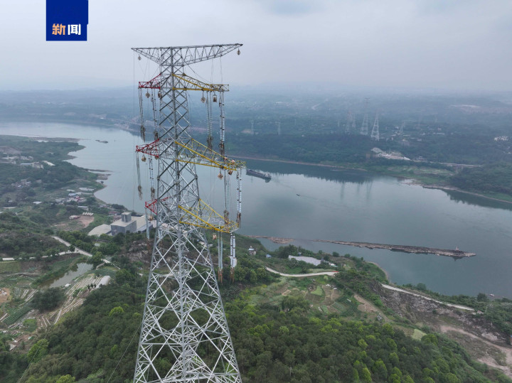 4月11日,重庆巴南新玉500千伏输变电工程跨长江放线功课现场,国网重庆电力初度编削期骗大载重无东说念主机搭载四段投掷器,牵拉着诱掖绳顺利跳动长江。