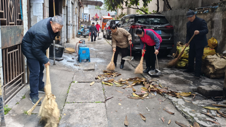 在金嗓子菜商场及附进弄堂,志愿者们手握扫帚、簸箕,正经清扫大地落叶、塑料袋等杂物,邃密计帐卫死活角,进一步净化全球环境,开云sports为住户营造了干净整洁、闲适良善的新春购物与糊口氛围。