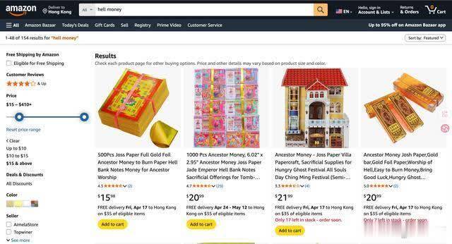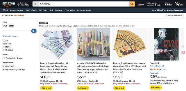 你在Amazon搜Hell Money或是Ancestor Money,还会搜到深广平素冥币,这些平素冥币随应对便拎出来,亦然一二十好意思元一沓,折算下来也得上百块东谈主民币。