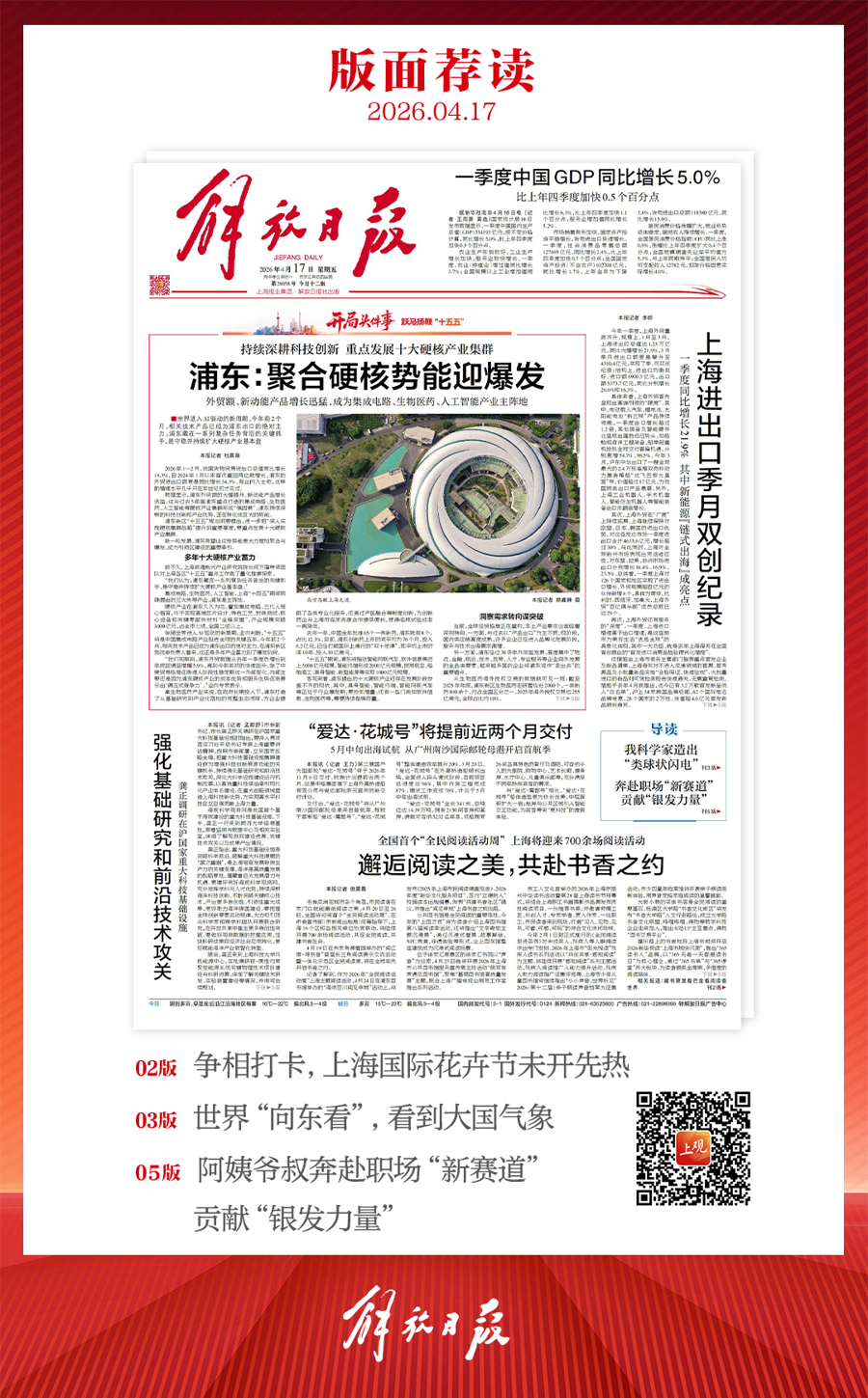 早上好!上不雅新闻『早读』来啦!今天是2026年4月17日星期五,农历三月月朔。